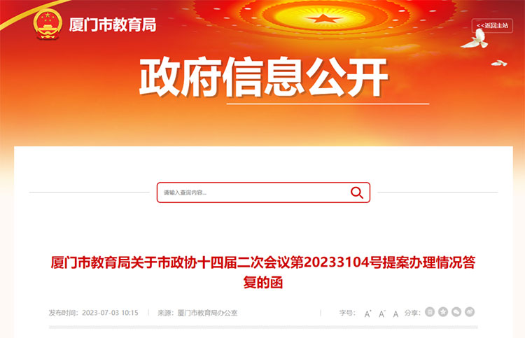 近日,厦门市教育局官网发布《厦门市教育局关于市政协十四届二次会议第20233104号提案办理情况答复的函》,其中提到:厦门理工学院更名为厦门理工大学工作已列入省高等学校设置“十四五”规划中,正稳步推进。筹建的“厦门海洋职业大学”列入了部、省高等学校设置“十四五”规划中。