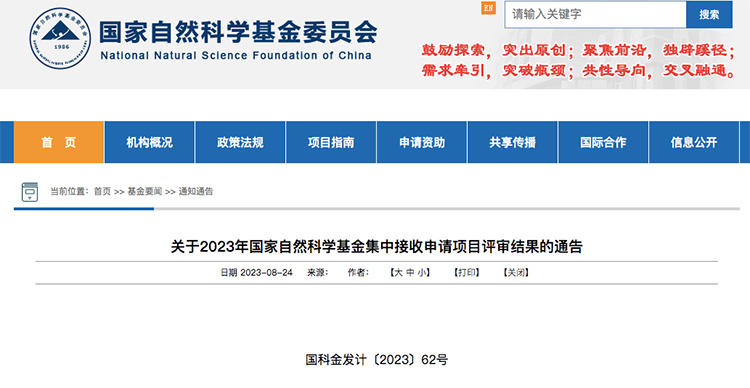 8月24日,国家自然科学基金委员会发布了《关于2023年国家自然科学基金集中接收申请项目评审结果的通告》。