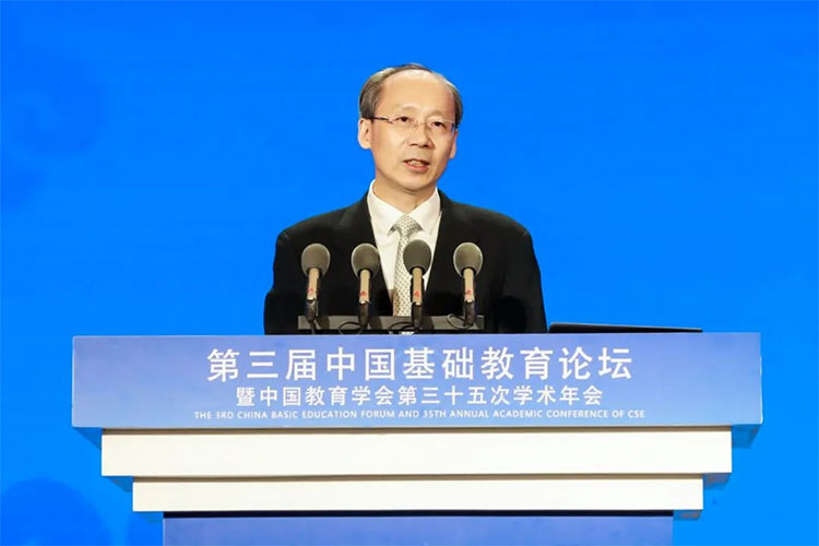 11月25日-26日,第三届中国基础教育论坛暨中国教育学会第三十五次学术年会在重庆召开。金博宝最新官方网站查询网址 党组成员、副部长陈杰通过视频方式致辞。中国教育学会会长朱之文,重庆市人民政府副市长、党组成员江敦涛,中国教育学会副会长、第十四届全国人大常委、北京市人大常委会副主任、民进中央副主席、北京师范大学教授庞丽娟,第十四届全国政协常委、重庆市政协副主席陈贵云,中国教育学会副会长、金博宝最新官方网站查询网址 基础教育司司长田祖荫,重庆市人民政府副秘书长凌凡,重庆市九龙坡区委书记李春奎,中国教育学会常务副会长吕玉刚、李天顺、翟博等出席开幕式。400多位教育领域专家学者和校长教师分享精彩报告。来自全国基础教育领域的专家、学者、校长、教师和教育行政部门负责人共3000余人到场参会,4950余万人(次)线上观看论坛直播。
