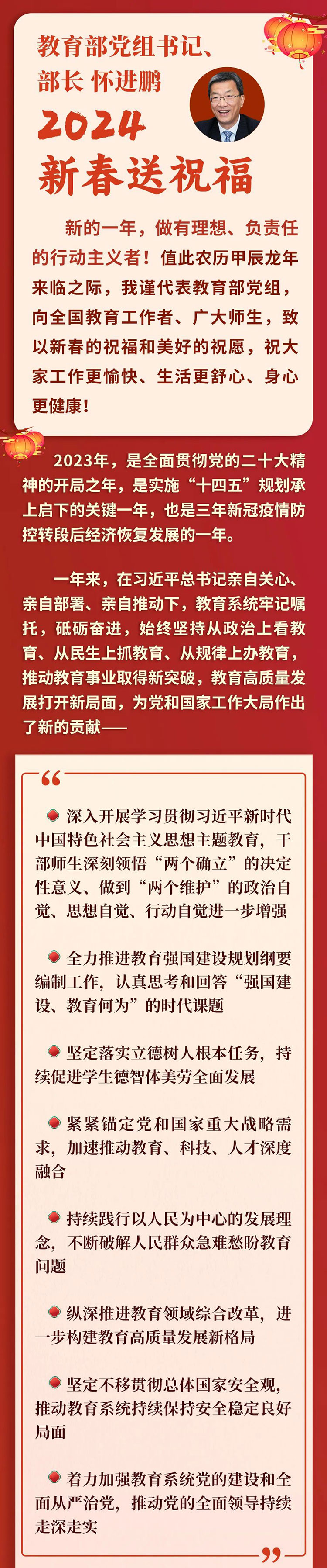 金博宝最新官方网站查询网址 党组书记、部长怀进鹏2024新春送祝福
