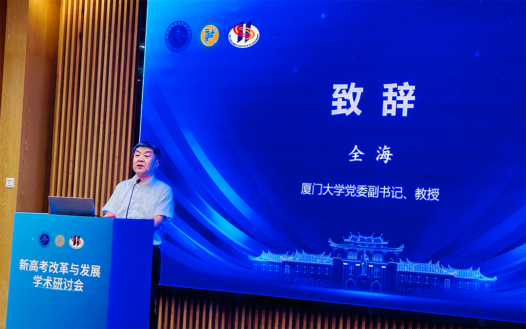 厦门大学党委副书记全海教授致辞,代表厦门大学向与会的专家学者表示热烈欢迎和衷心感谢。他指出,对新高考改革的科学研究与未来展望是助力教育事业长足进步的重要之举。厦门大学考试研究中心底蕴深厚,长期关注考试制度与考试政策、中国考试史、考试基本理论研究,特别是高考改革研究,具有鲜明的特色。面对新高考改革的时代命题,始终站在研究前沿,提出具有创新性和前瞻性的理论观点与建议。希望考试研究中心能够继续发光发热,为促进我国高考制度的改革与发展作出更大的贡献。