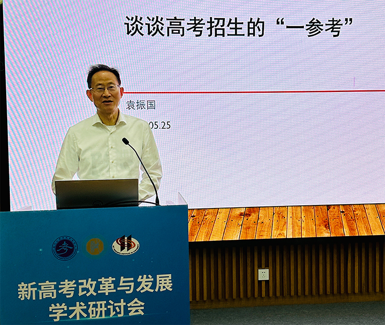 在主旨报告环节,袁振国教授在题为《谈谈高考招生的“一参考”》的报告中指出,高考改革应从“分类考试、综合评价、多元录取”的核心目标出发,充分发挥综合素质评价在高校招生中的参考价值,进一步提升高校招生能力。
