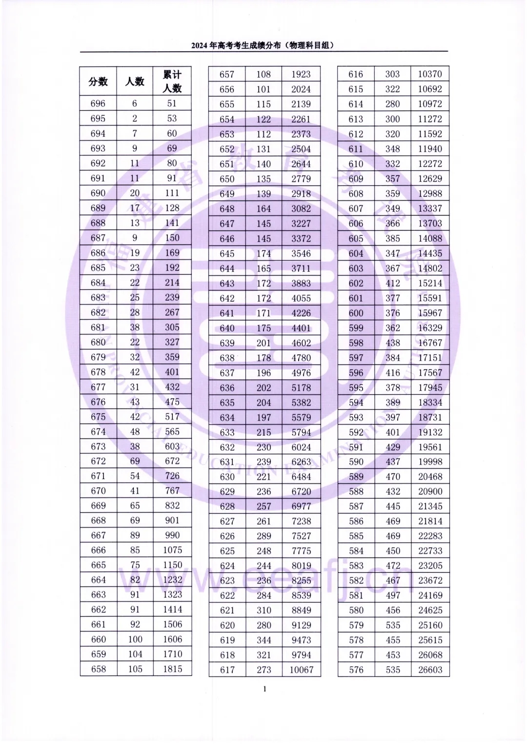 2024福建高考一分一段公布!