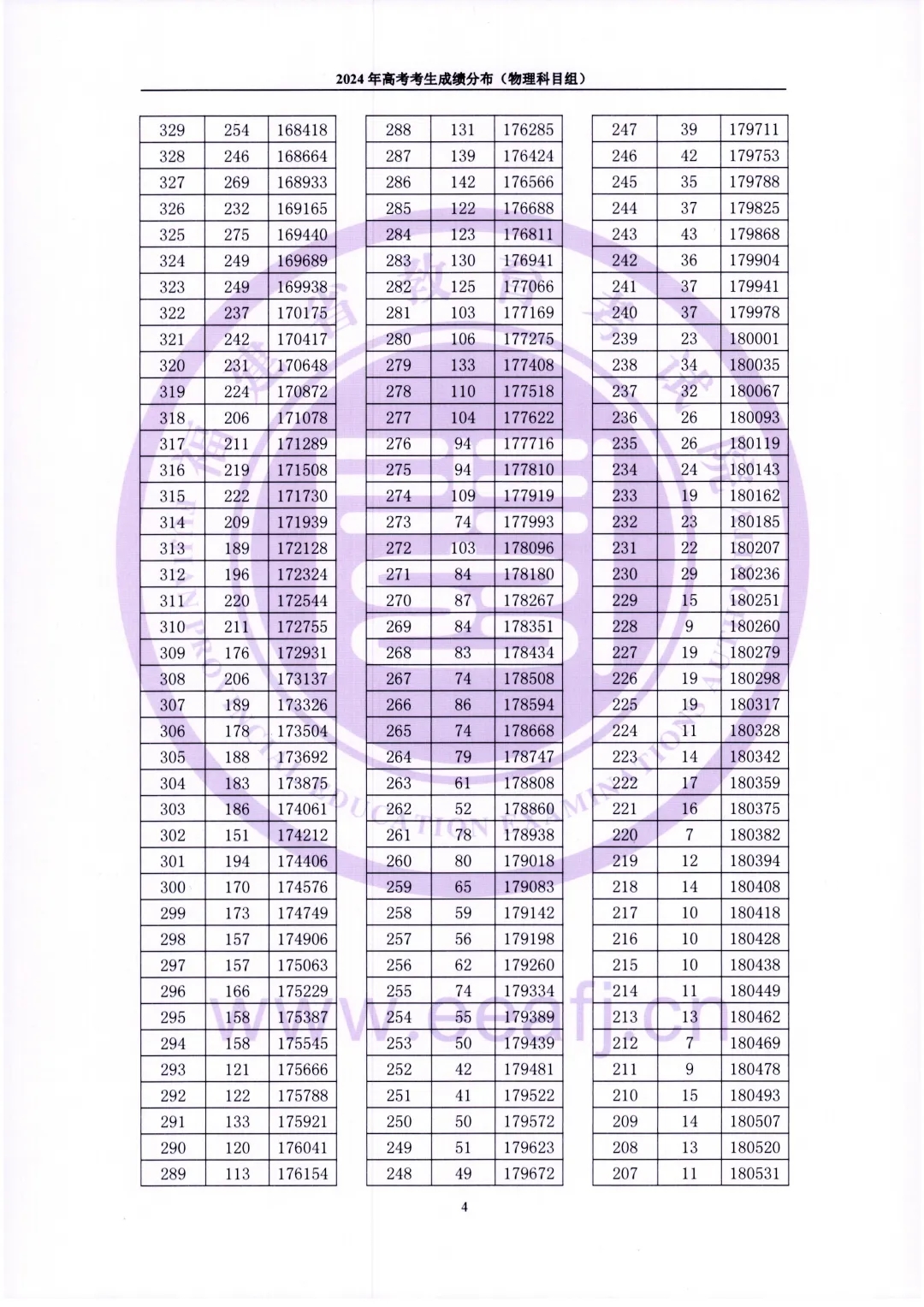 2024年福建省高考考生成绩分布(物理科目组)