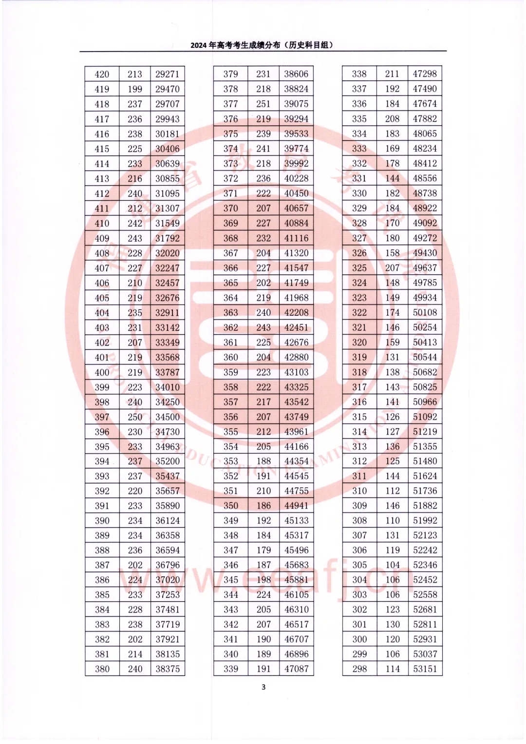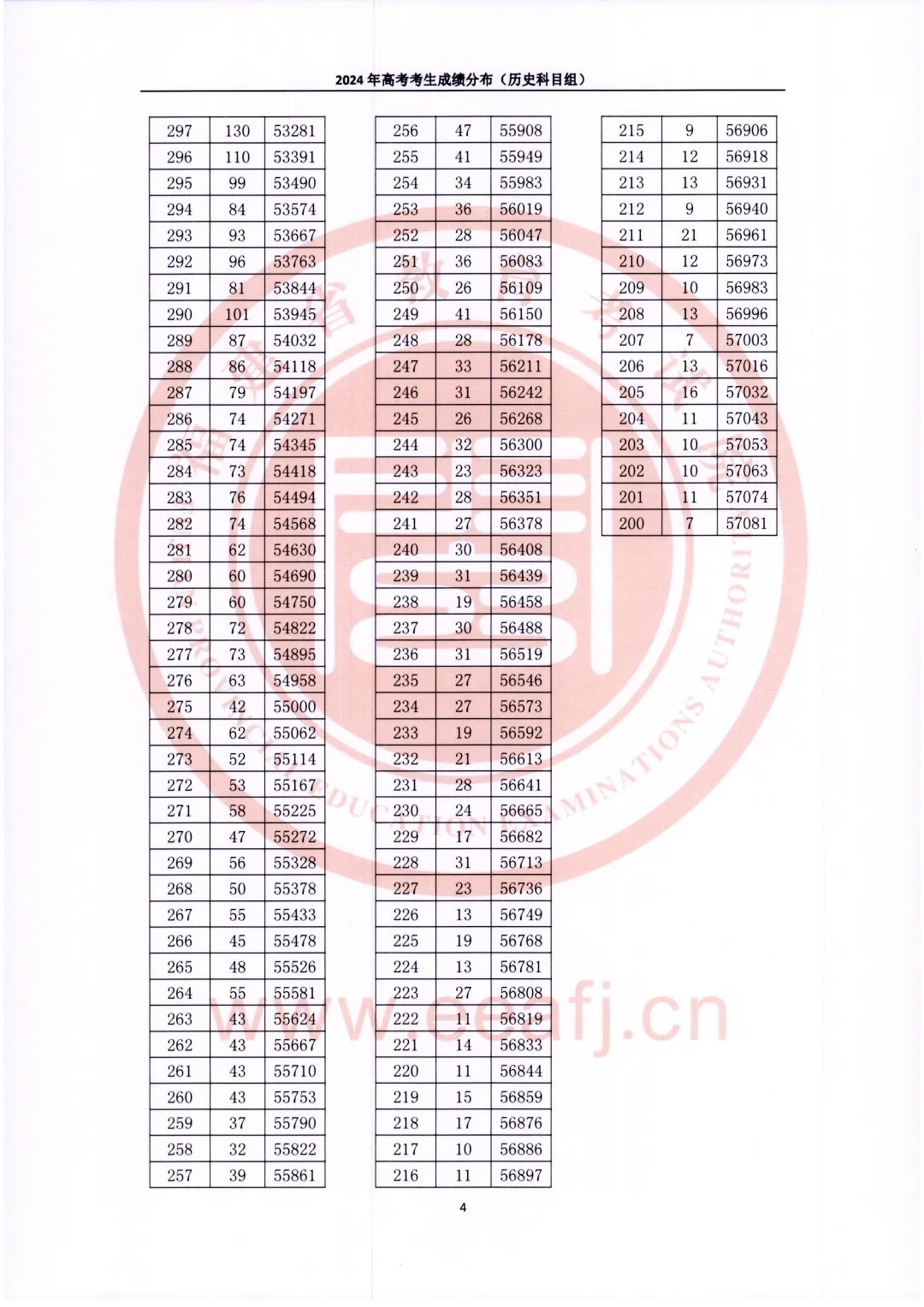 2024年福建省高考考生成绩分布(历史科目组)