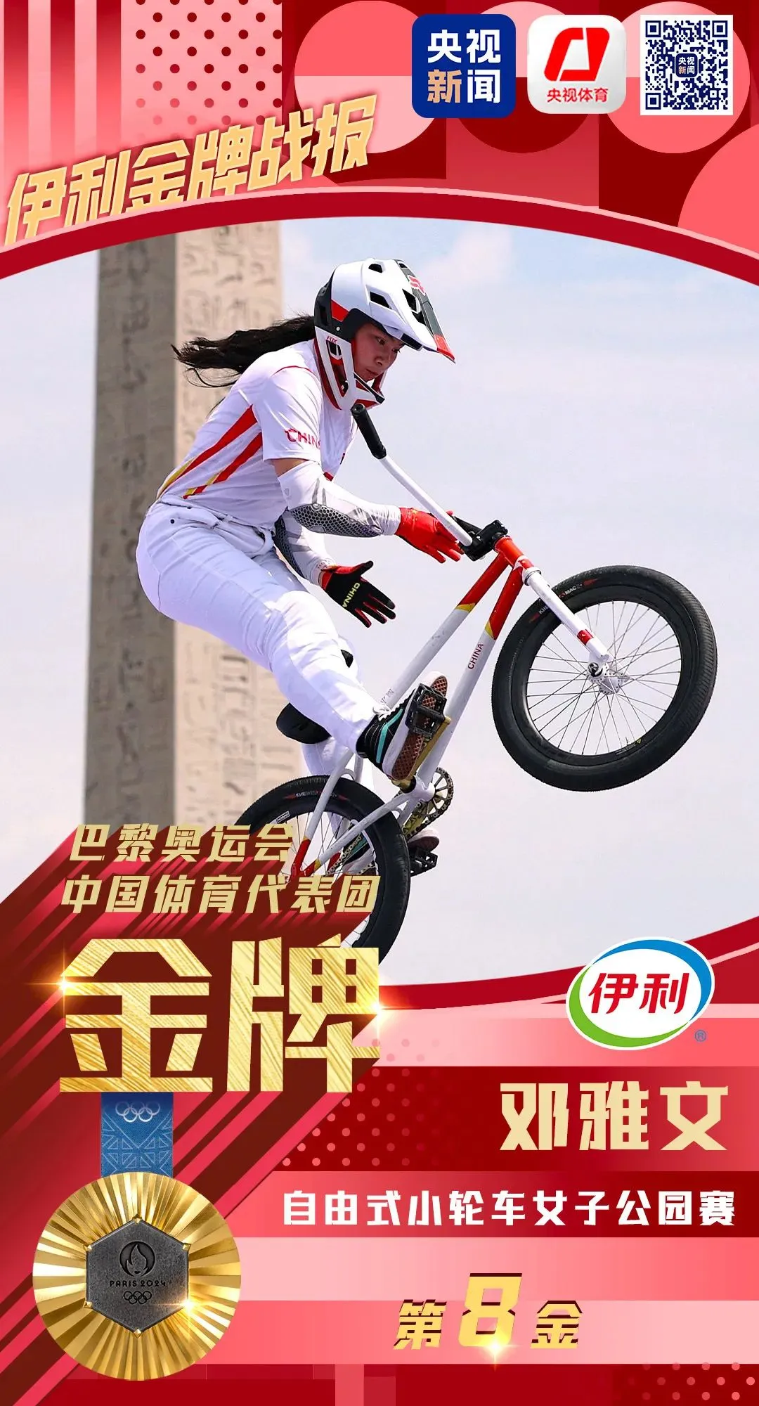 北京时间7月31日,在巴黎奥运会自由式小轮车女子公园赛决赛中,成都体育学院运动训练专业2023级本科学生邓雅文以92.6分位居第一,这也是中国队夺得的首枚小轮车自由式项目的奥运会金牌!同时也是中国在巴黎奥运会获得的第八枚金牌!