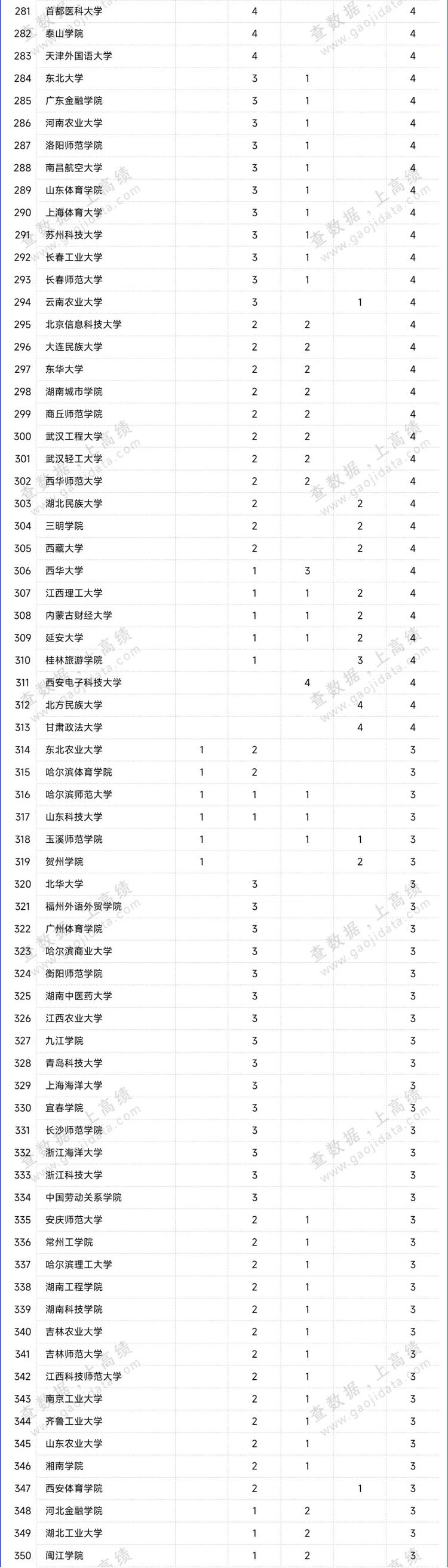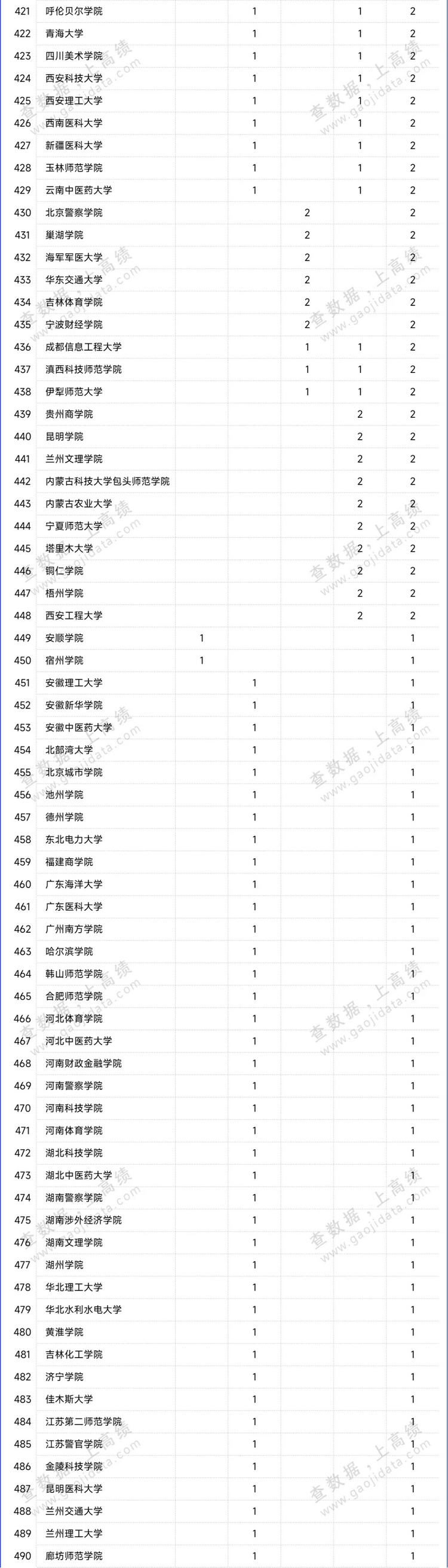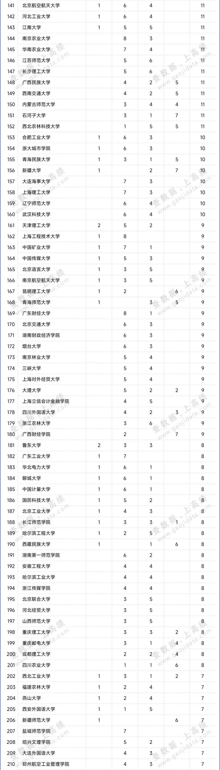 据统计,共有587所高校拟入选。四川大学以66项的拟立项数位居榜首,山东大学以拟立项数59项位居全国第二位,武汉大学和复旦大学以54项的拟立项数并列第三。中国人民大学、华中师范大学、华东师范大学、郑州大学、厦门大学、浙江大学、南京大学、上海大学、西南大学、中山大学、安徽大学、北京大学等高校的拟立项数量≥45项。