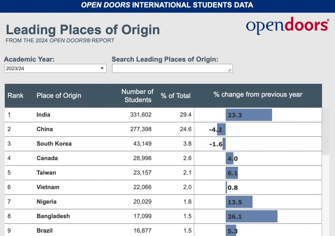 北京时间2024年11月18日晚,美国国际教育研究所(Institute of International Education, IIE)发布了《2024年度美国国际教育门户报告》,也就是:Open Doors 2024 Report。