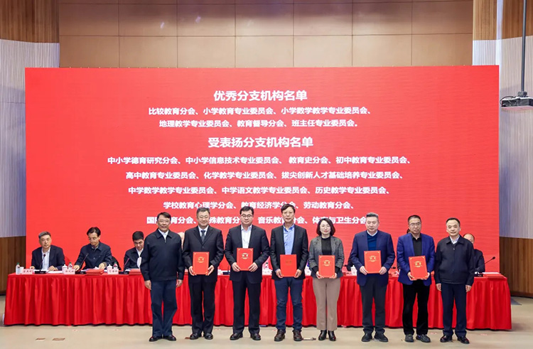 会上,公布了中国教育学会2024年度优秀分支机构名单。杨银付宣读了《中国教育学会关于公布2024年度优秀分支机构的决定》。经学会考核委员会集体评审,学会比较教育分会、小学教育专业委员会、小学数学教学专业委员会、地理教学专业委员会、教育督导分会、班主任专业委员会等6个分支机构被评定为“优秀分支机构”,并对在方向引领、品牌建设、规范管理、队伍建设、学术成果、服务质量等方面表现比较突出的17个分支机构予以表扬。中国教育学会会长朱之文、顾问郑富芝共同为学会2024年度优秀分支机构颁发证书。