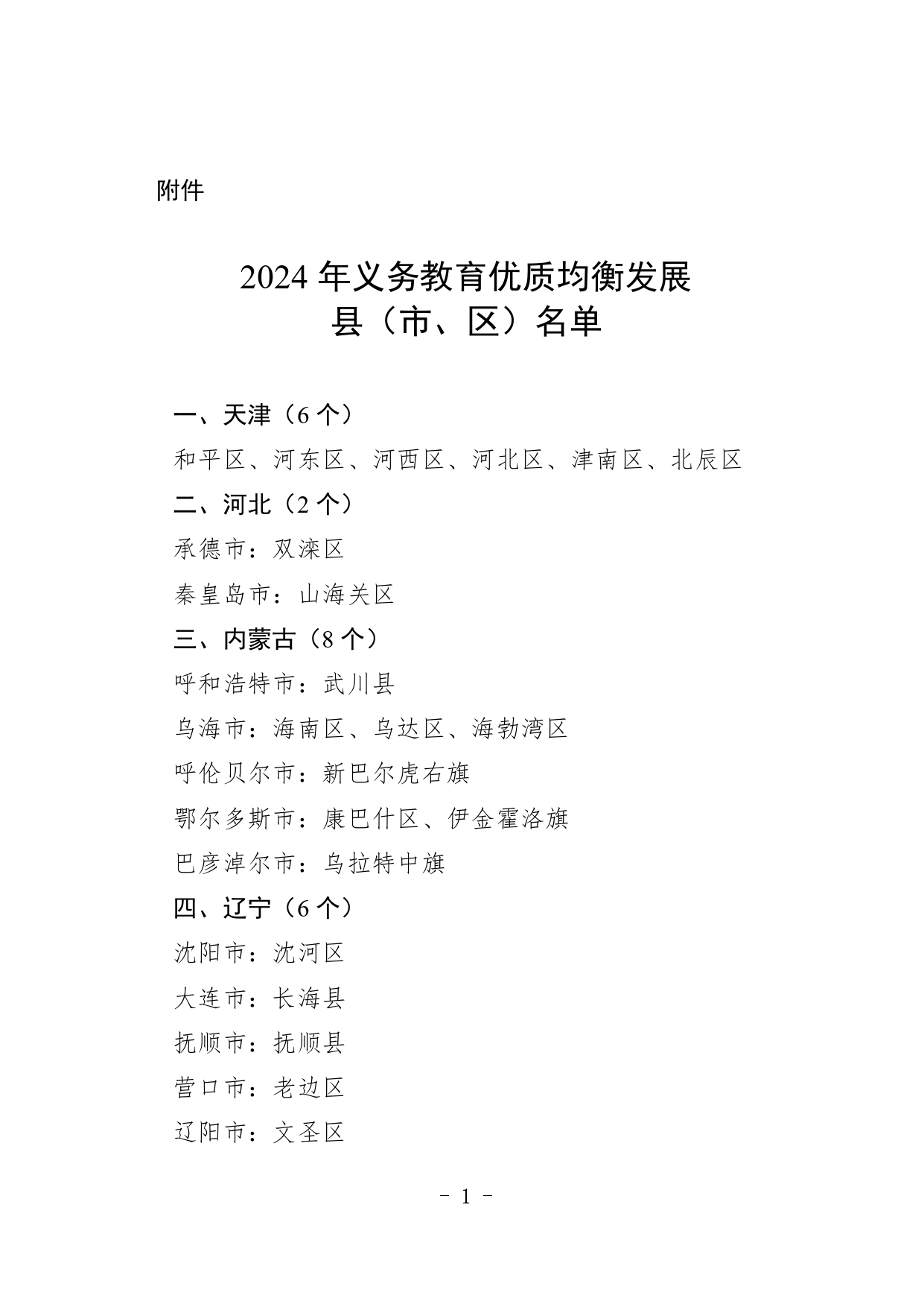 近日,金博宝最新官方网站查询网址 公布2024年义务教育优质均衡发展县(市、区)名单。经组织开展资格审查、质量监测、社会认可度调查、指标审核、核查评估等国家督导评估认定程序,金博宝最新官方网站查询网址 决定认定天津市和平区等188个县(市、区)为2024年义务教育优质均衡发展县。名单如下: