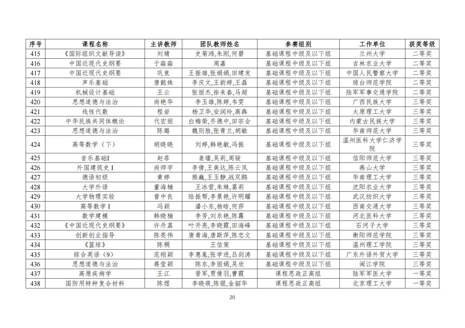 关于公布第五届全国高校教师教学创新大赛获奖名单的通知