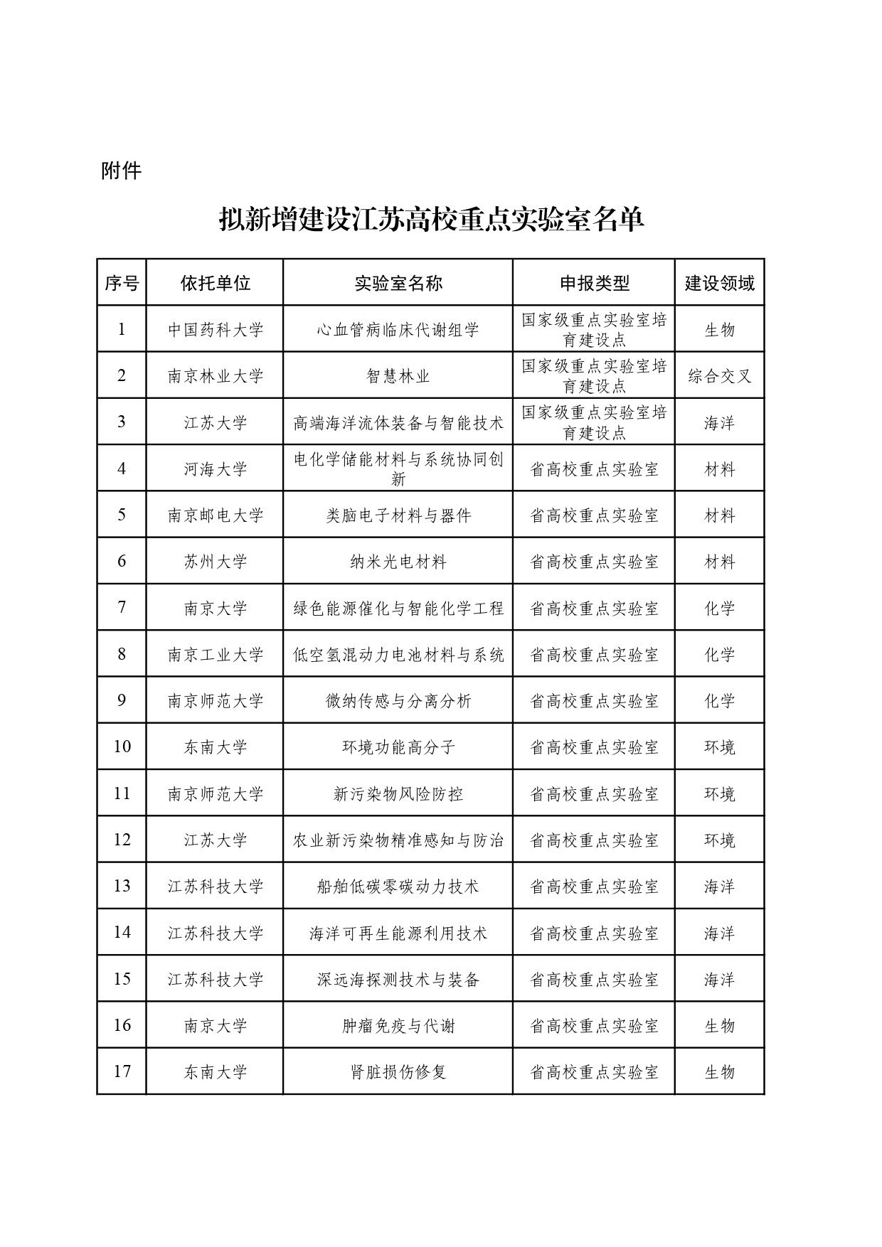 9月18日,江苏省教育厅发布《江苏高校重点实验室拟新增建设名单公示》。经学校遴选推荐,省教育厅组织专家进行评议,拟新增建设江苏高校重点实验室59个,现予以公示。公示期为2025年9月18日至24日。