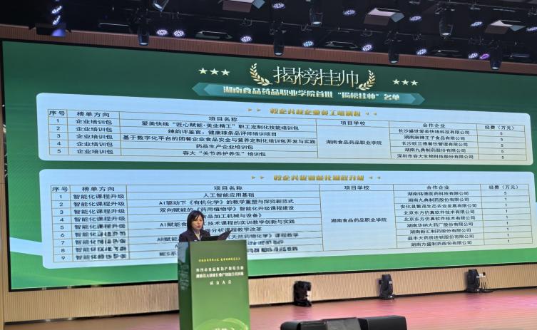 湖南食品药品职业学院党委委员、副校长万琼宣读“揭榜挂帅”项目