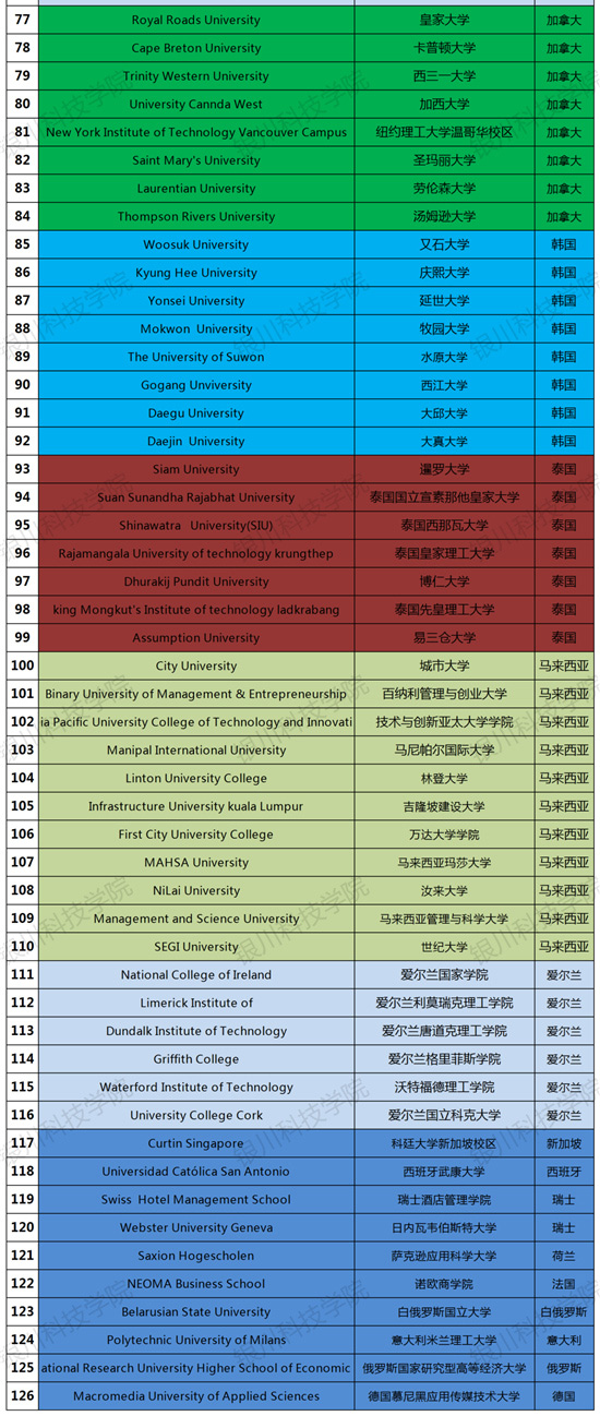 银川科技学院进一步满足学生高层次学习的个性化需求,为学校学子搭建“高端化、 国际化、个性化”的教育平台,帮助学生实现“本硕直通、名校读研”继续深 造的目标,学校与英、美、澳、加、日、韩、法等国家的百余所知名高校深度合作,针对学生个性特点,制定国际化人才培养方案,指导学生提高学习能力,使 GPA 符合海外目标院校的要求。开展跨文化培养、学术研究培养、雅思英语学习等课程,在完成本科专业的同时,达到国外大学硕士录取条件,获得银川科技学院本科文凭后,继续到国外名校完成硕士阶段学业,实现“国内本科 + 国外硕士”直通的目标。
