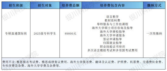 专硕直通国际班培养费