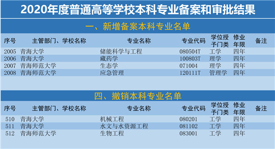 青海2所高校新增4个本科专业,撤销3个本科专业,详细名单如下: