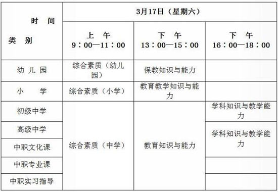 导读: 2018年上半年陕西教师资格证考试时间为:3月17日;报名时间为:1月16日8:00至19日18:00;网上缴费时间为:1月16日8:00至21日12∶00;准考证打印时间:考前一周;成绩查询:4月19日开始。