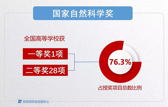 全国高等学校获得2018年国家自然科学奖一等奖1项、二等奖28项,占授奖项目总数38项(一等奖1项,二等奖37项)的 76.3%。其中,西北地区10所院校共获国家自然科学奖二等奖3项。