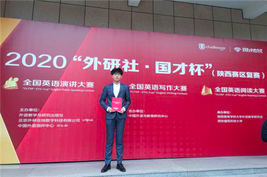 此次竞赛于2020年10月31日由外语教学与研究出版社,北京外研在线数字科技有限公司和中国外语测评中心共同主办,由陕西高等学校大学外语教学研究会和西安建筑科技大学承办。西安外事学院英语系白玉洁和赵文娟两位老师带领7名同学与来自陕西省包括公办、民办在内的五十多所高校优秀选手同台竞技。赛场上外事学院学生顶住压力,攻克难关,奋力拼搏,真正展现出了外事学子自强不息的精神,最终摘得桂冠。西安外事学院成为了此次陕西赛区复赛中唯一获得演讲与写作双项比赛一等奖的民办高校。