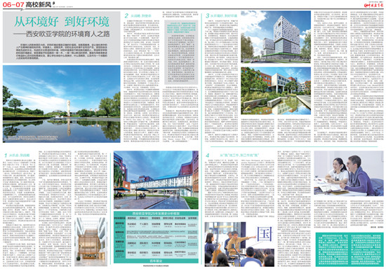 2021年1月5日,《中国教育报》以“从环境好 到好环境”为题,用两个整版报道西安欧亚学院的环境育人之路。现全文转载如下: