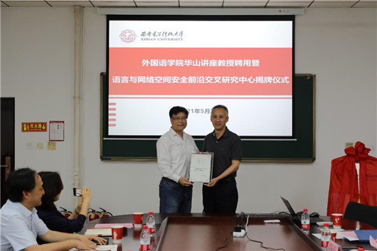 金宝搏188入口 陕西站讯 5月28日下午,西安电子科技大学外国语学院在南校区信院楼Ⅱ区424会议室举行了“华山学者”讲座教授聘用暨语言与网络空间安全前沿交叉研究中心揭牌仪式,聘任上海外国语大学陈坚林教授、英国兰卡斯特大学曾敬涵教授为“华山学者”讲座教授。副校长王泉,科学研究院常务副院长、基础科研与能力建设部部长蔡固顺,人才工作办公室副主任容岚,前沿交叉研究院副院长邢孟道,网络与信息安全学院院长胡瑞敏,外国语学院执行院长马刚及学院领导班子成员、学术委员会主任、教授委员会主任、系部中心主任、师生代表参加了聘用、揭牌仪式。仪式由外国语学院党委书记徐战利主持。