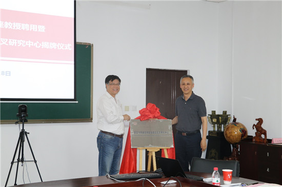 仪式伊始,徐战利首先介绍了参加聘用、揭牌仪式的领导和来宾。他代表外国语学院对陈坚林、曾敬涵两位教授的加盟表示热烈的欢迎,对各位领导参加本次仪式表示衷心的感谢。接着,人才工作办公室副主任容岚宣读了学校的聘用决定,外国语学院执行院长马刚介绍了两位教授的个人简历。