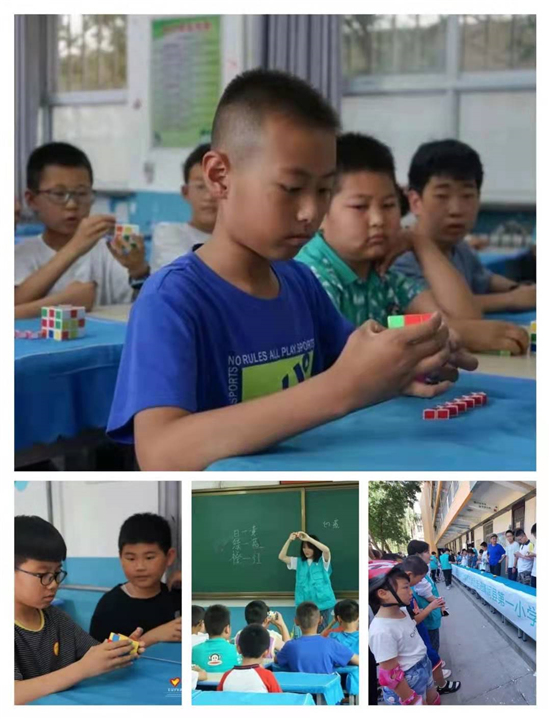 在魔方课堂上,支教团以讲故事的方式,为学生们逐步讲解了三阶魔方的还原技巧和公式方法,在场的学生们认真聆听,踊跃提问。经过志愿者的耐心教导,孩子们慢慢学会了还原三阶魔方,提高了学生们的观察与思考的能力,锻炼了他们的动手能力。