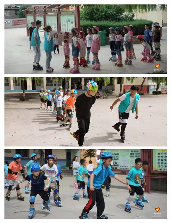 在室外的轮滑教学中,支教团成员按照轮滑训练流程,通过示范教学,增强学生们动作的规范性,逐步提升轮滑的行进速度,在训练过程中,志愿者认真观察每一位学生的表现,并给予积极的鼓励和帮助,让孩子们在轻快活跃的课堂中不仅学到了轮滑知识,更磨练了意志、提高了品质。
