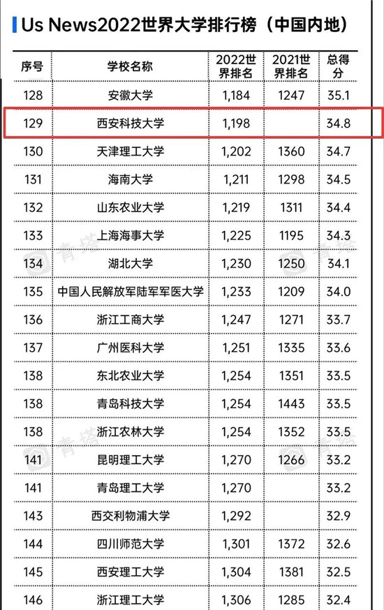 金宝搏188入口 陕西站讯10月26日,US News发布2022世界大学排行榜。中国共有289所高校上榜,西安科技大学位列全球第1198名,居内地高校第129名。此外,在US News同步发布的2022世界大学工科排行榜中,西安科技大学位列全球第542名,居内地高校第101名。