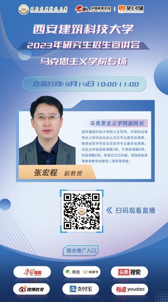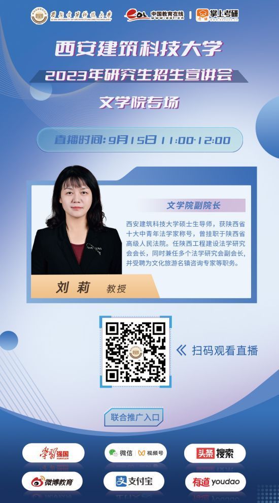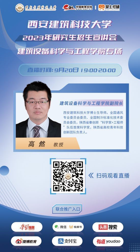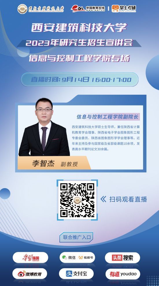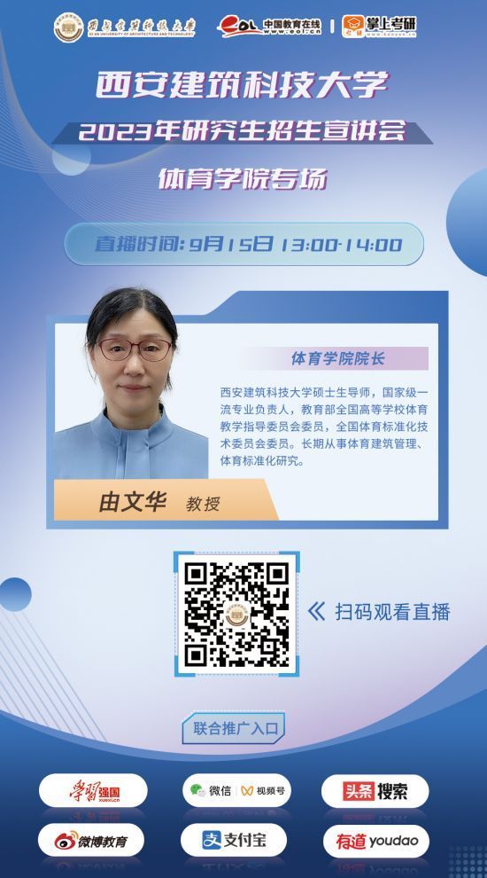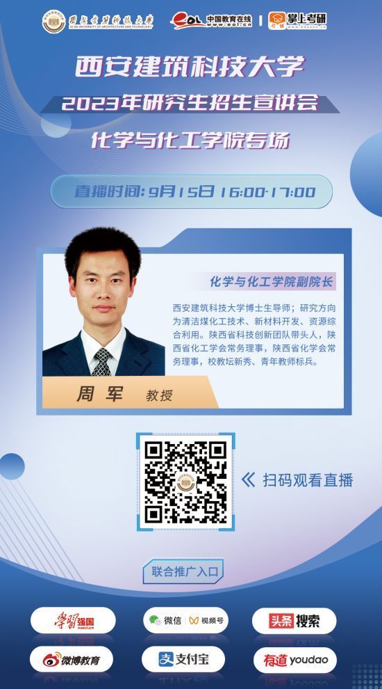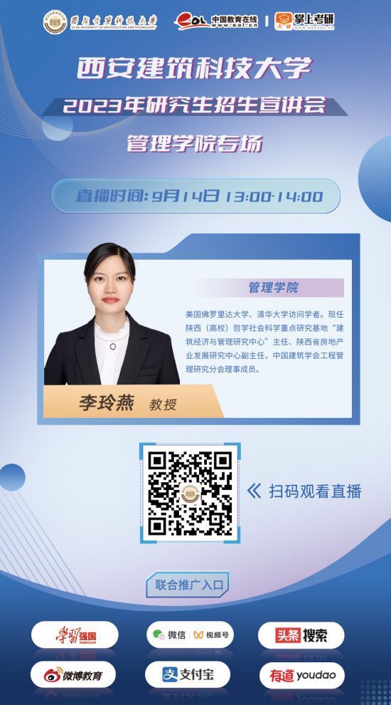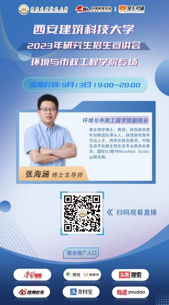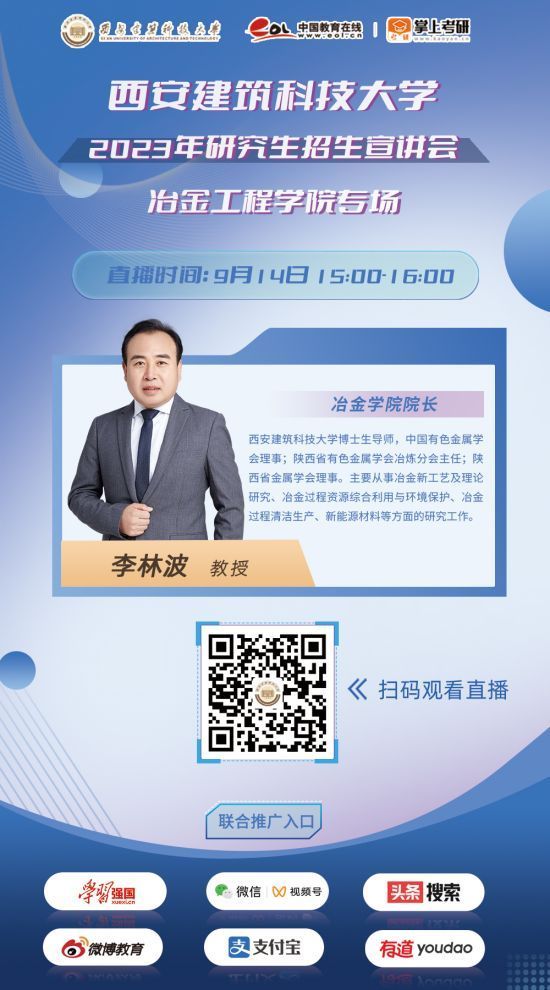 为畅通研究生招生咨询渠道,帮助同学们详细了解研究生招生考试新政策和新变化,助力广大考生更加充分地备考,9月13日-9月20日,西安建筑科技大学2023年研究生招生线上宣讲会,20位专家教授与你相约!