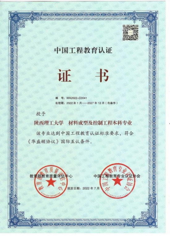 陕西理工大学材料成型及控制工程——国家级一流本科专业建设点