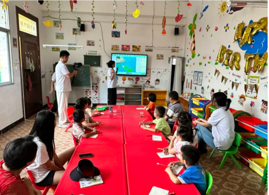 ——用心传递温暖,用爱陪伴成长。实践团通过开展“讲好英雄故事,宣传红色教育”“你我共成长,同画一幅画”“放飞梦想,快乐成长”等活动陪伴孩子们度过难忘时刻。队员们用故事传承红色精神,用英雄事迹浸润童心,引导孩子们铭记历史,感恩当下,珍惜现在的幸福生活。此外,队员们通过《结对而行》《寻宝大行动》《传球》等游戏与小朋友一起度过了美好的欢乐时光。在活动中,实践团还将橡皮、铅笔、画笔、篮球等小礼物送给小朋友们,一边与孩子们玩游戏,一边聊天,深入了解孩子们的日常生活、学习情况,鼓励孩子们要好好学习,自立自强,勇于克服困难,做勇敢的小朋友。