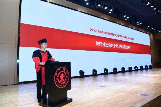 学生代表、能动学院博士毕业生祝乘风表达了对母校的感谢。他表示,作为交大人,要始终心怀“国之大者”,在今后的工作中面向国家重大需求,在困难面前不屈不挠,锲而不舍。“未来我将继续扎根西部,践行梦想,为我国航天事业奋斗终生。”