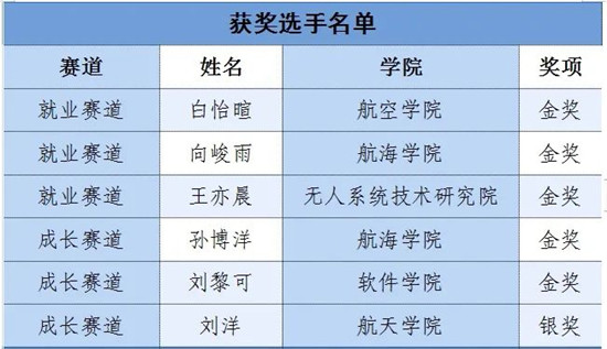 本次大赛自2023年10月启动以来,吸引了陕西省93所高校,39.5万余名学子报名参加。成长赛道和就业赛道高教组共有120名选手入围省赛决赛,经过主题陈述、评委提问、综合面试、天降offer等环节,按照评委专家和企业评审团分数排名,西北工业大学6名选手斩获5金1银优异成绩。