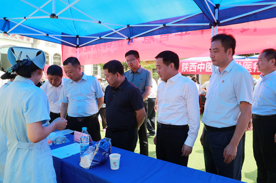 随后,蒲济生一行前往义诊现场,看望慰问陕西中医药大学附属医院在长舌头村开展2024年全省“中医药文化服务月”活动的义诊专家。