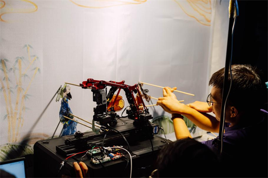 “这是我第一次尝试将机械臂与皮影戏、木偶戏相结合,既新鲜又充满挑战。”来自西安理工大学的大三学生王欣颖眼神中充满了对团队合作力量的赞叹。“看着我们团队一步步克服技术难关,从最初的生疏到后来的默契配合,那种成就感简直无法用言语形容。”