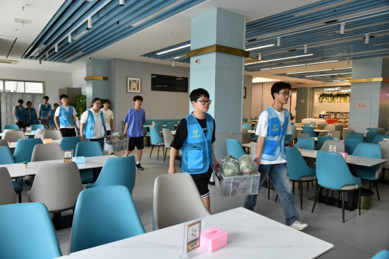 第二天中午,这些由同学们亲手采摘、打包、运输的纯天然无公害蔬菜出现在学校食堂里,计算机科学学院杨帆同学领取到了刚出锅的第一棒玉米,他激动地表示:“这是我吃过最好吃的玉米!能品尝到自己的劳动果实真幸福,以后我会更加积极参与学校组织的劳动实践教育活动,不仅收获果实,更收获不一样的自己。”在教工餐厅入口处,义工岗的同学也为老师们分发打包好的新鲜蔬菜,老师们接过蔬菜时纷纷点赞。