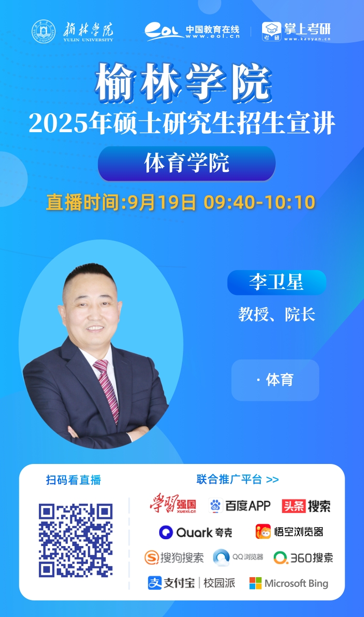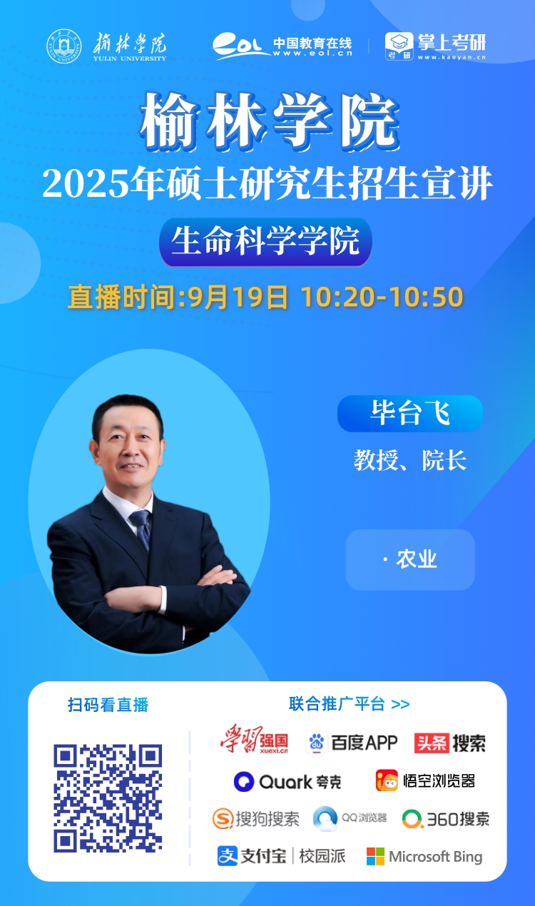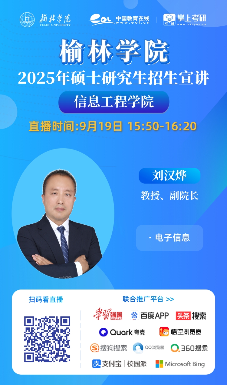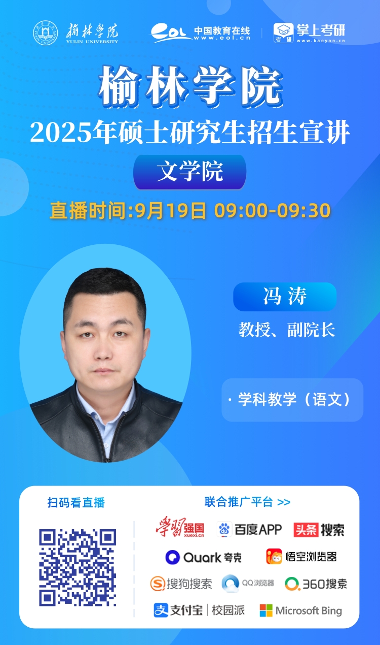 亲爱的同学们,激动人心的时刻即将来临!榆林学院2025年研究生招生直播宣讲会,即将于2024年9月19日与大家相约云端!