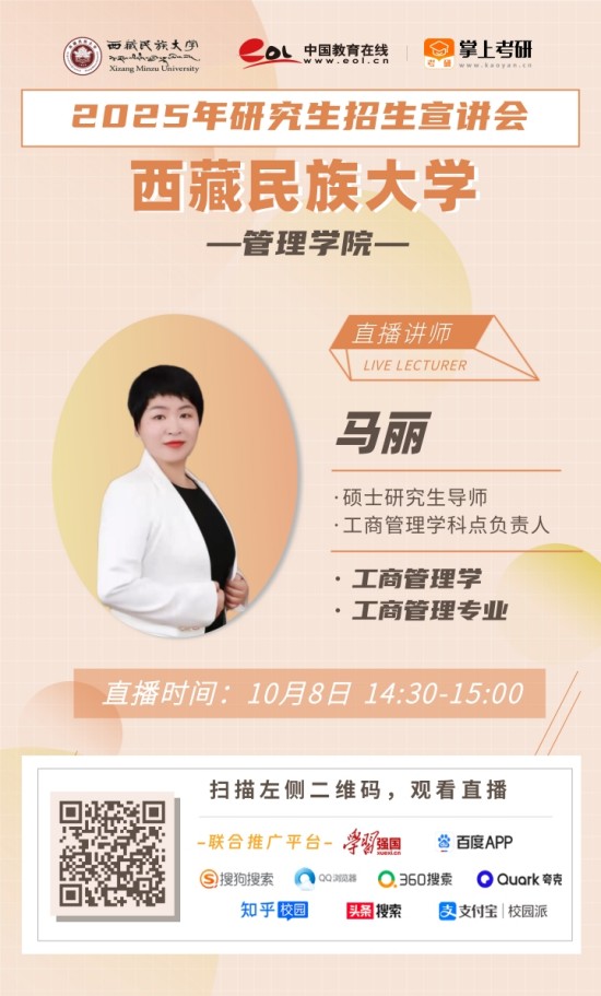 直播预告 | 10月8日,【陕西·咸阳】西藏民族大学2025年研究生招生宣讲会即将召开!