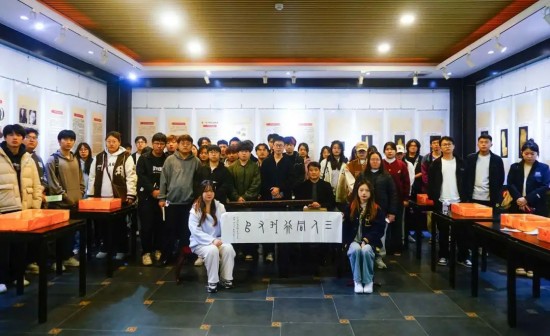 11月7日,学校艺术教育中心《书法鉴赏》课程策划举办“书法鉴赏与文化寻根”甲骨文馆参观活动。现场古琴悠扬,陈鹏涛老师带领学生们参观甲骨文实物展览并进行甲骨文书法临摹创作。