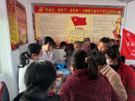 1月4日,团队在温泉镇晏家湾村卫生室为老人进行免费基础体检。体检过程中,成员耐心解答疑问、提供健康建议、指导填写养老需求调查问卷。
