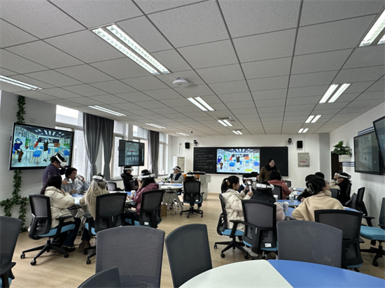 学校构建了智慧型教学支撑环境,AI赋能教学过程管理、教学资源共享与监管。建设了AI驱动的“翱翔学堂”平台,促进教师数字化教学资源共享。开发了基于AI沉浸式VR口语训练测试系统,帮助教师带领学生进行身临其境的口语学习和操练。