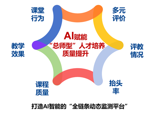 学校打造了AI赋能的“全链条动态监测平台”,实时汇聚课程评价、课堂教学行为、学生作业质量、实验项目完成度、学科竞赛表现、学生成绩分析等各类数据,构建课程质量分析模型,聚焦课程质量关键问题,对课程进行全方位分析。
