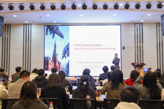 会议邀请了多位知名学者作大会主题报告。加拿大多伦多大学、北京大学卢海教授分享了关于中国信息披露和可持续发展(ESG)实践的研究;北京大学陆正飞教授探讨了中国国有企业董事会治理的根源问题;美国康奈尔大学P. Eric Yeung教授作了主题为“From Green to Green: Urban Parks and Green Transition”的报告;西京学院Yasir Shahab教授围绕Do green firms hire and fire supply chain partners based on sustainability criteria?分享了研究成果。