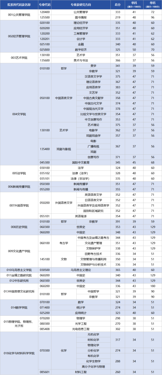 西北大学2025年硕士研究生招生考试复试分数线发布