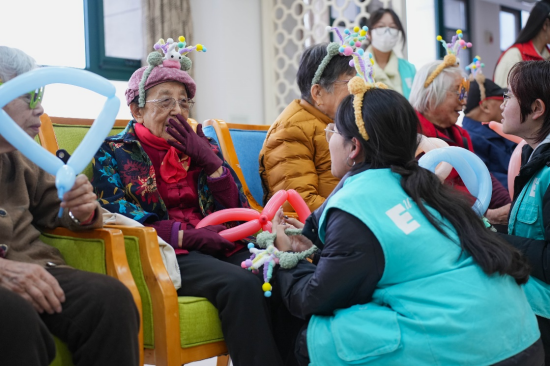 青年社区志愿队在敬老院开展与老人趣味拍照活动