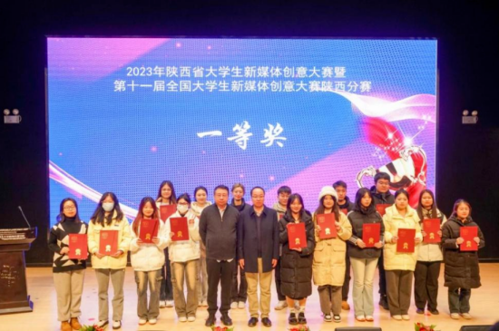 全国大学生新媒体创意大赛陕西分赛部分获奖学生及颁奖嘉宾合影