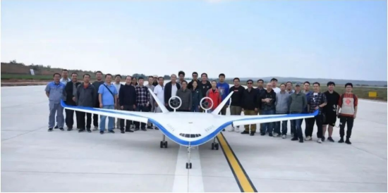 研制的新一代翼身融合大型客机的缩比试验机,在西工大靖边通用机场成功试飞。