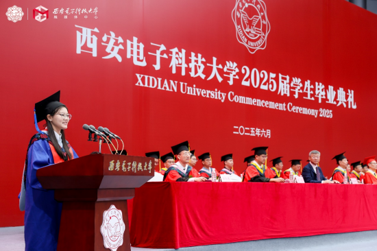 网络与信息安全学院2025届本科生吕明远作为本科毕业生代表发言。他在回顾自己在西电的四年学习生活时坚定且自信,“不忘砥砺精神,永葆爱国报国之心——这是母校赋予我的红色密码;不忘奋斗本色,永葆进取奋进之心——这是母校赋予我的成长密码;不忘立德根本,永葆崇德向善之心——这是母校赋予我的担当密码。”展望漫漫前路,他自信地说,“未来,我们将永远牢记‘厚德、求真、砺学、笃行’的校训,用自己的所学所长,回应时代的呼唤,让青春之花在祖国和人民最需要的地方绽放,共同书写属于新时代西电人的无悔青春!”