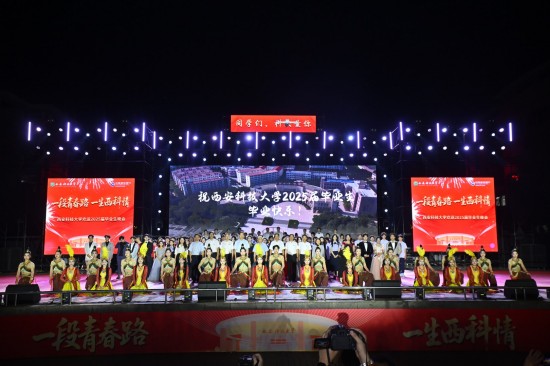 青春正好,骊歌未央。6月24日晚,临潼校区骊山校园的明德广场星光熠熠,以“一段青春路 一生西科情”为主题的2025届毕业晚会用艺术盛宴为毕业生饯行,共叙西科青春美好回忆,展望未来奋斗新程。校长邓军、校党委副书记陈春林、黄英维,副校长曹明、文虎、程卫星、罗振敏以及各部门、各学院主要负责人、团委书记、毕业班辅导员参加活动。中国建设银行陕西省分行机构业务部副总经理郭焱、营业部副总经理王晓阳等作为嘉宾来到现场。